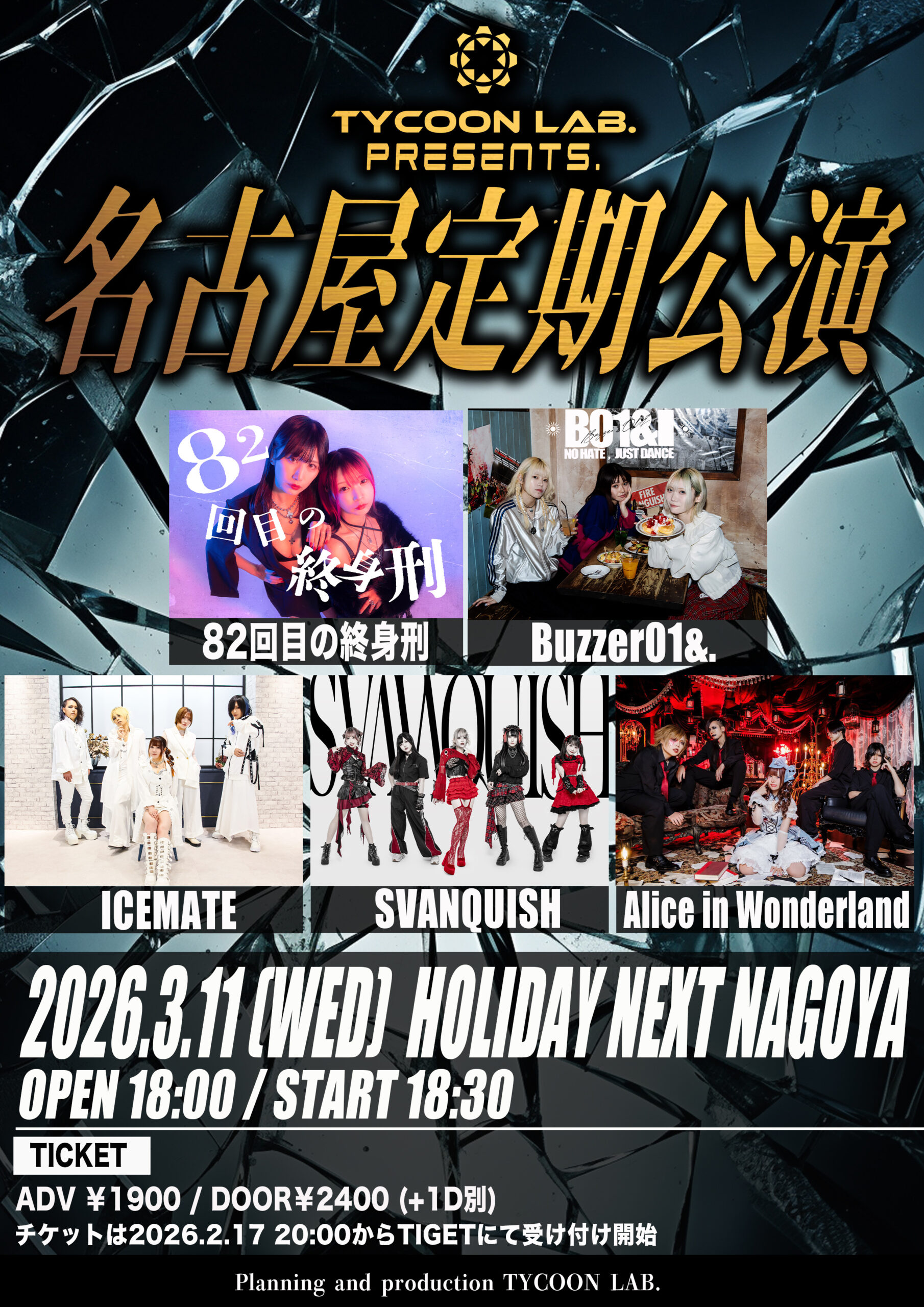 料金:前売 ¥3,500(Drink代別) / 当日 ¥4,000(Drink代別) / VIP¥10,000(Drink代別)