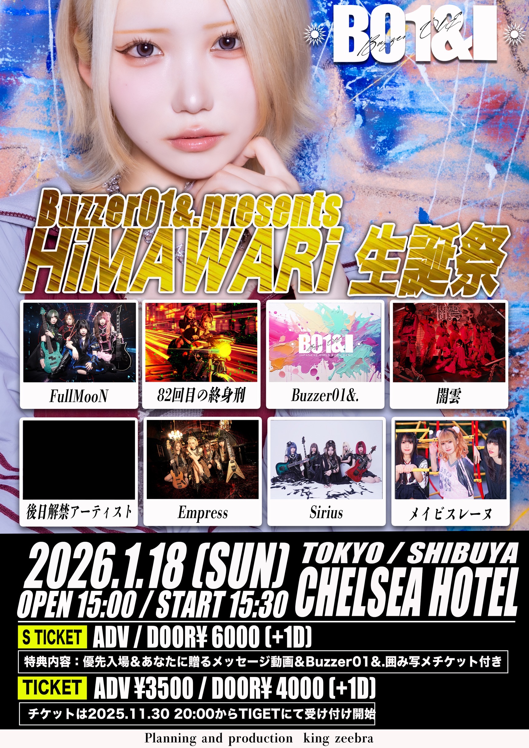 料金:前売 ¥3,000(Drink代別) / 当日 ¥3,500(Drink代別) / VIP ¥10,000(Drink代別) / 配信¥3,000(ツイキャス2週間)
