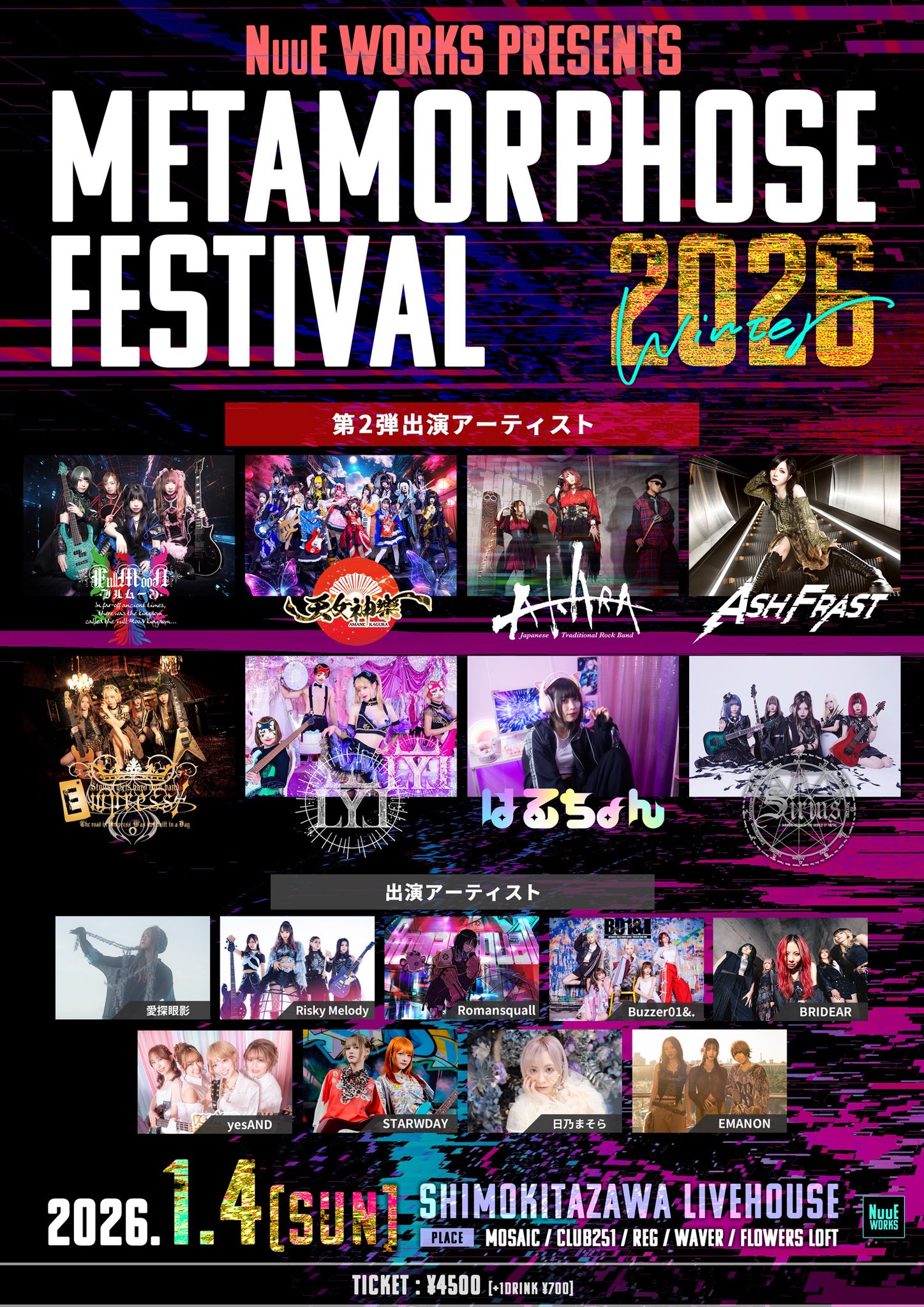出演:天女神樂(星井あおはサポートギターとして出演します) / 愛探眼影 / Risky Melody / Romansquall / Buzzer01&. / BRIDEAR / yesAND / STRAWDAY / 日乃まそら / EMANON / FullMooN / AKARA / ASH FRAST / Empress / LYL / はるちょん / Sirius 他