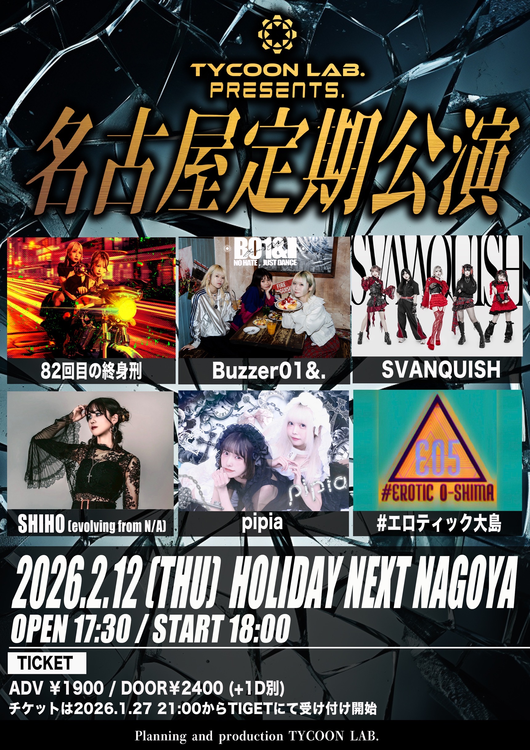 出演:SVANQUISH(※星井あおはサポートギターとして出演します) / Buzzer01&.(※星井あおはサポートギターとして出演します) / 82回目の終身刑 / #エロティック大島 / pipia / SHIHO (evolving from N/A)