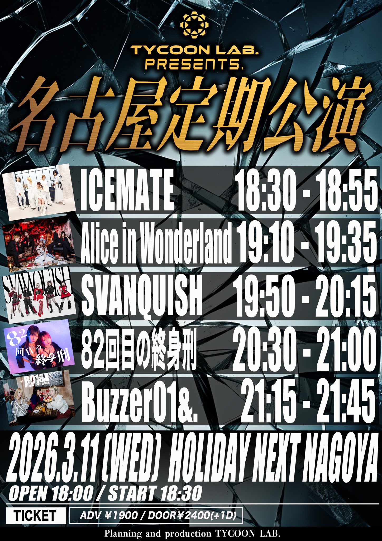 出演:SVANQUISH(※星井あおはサポートギターとして出演します) / Buzzer01&.(※星井あおはサポートギターとして出演します) / 82回目の終身刑 / Alice in Wonderland / ICEMATE